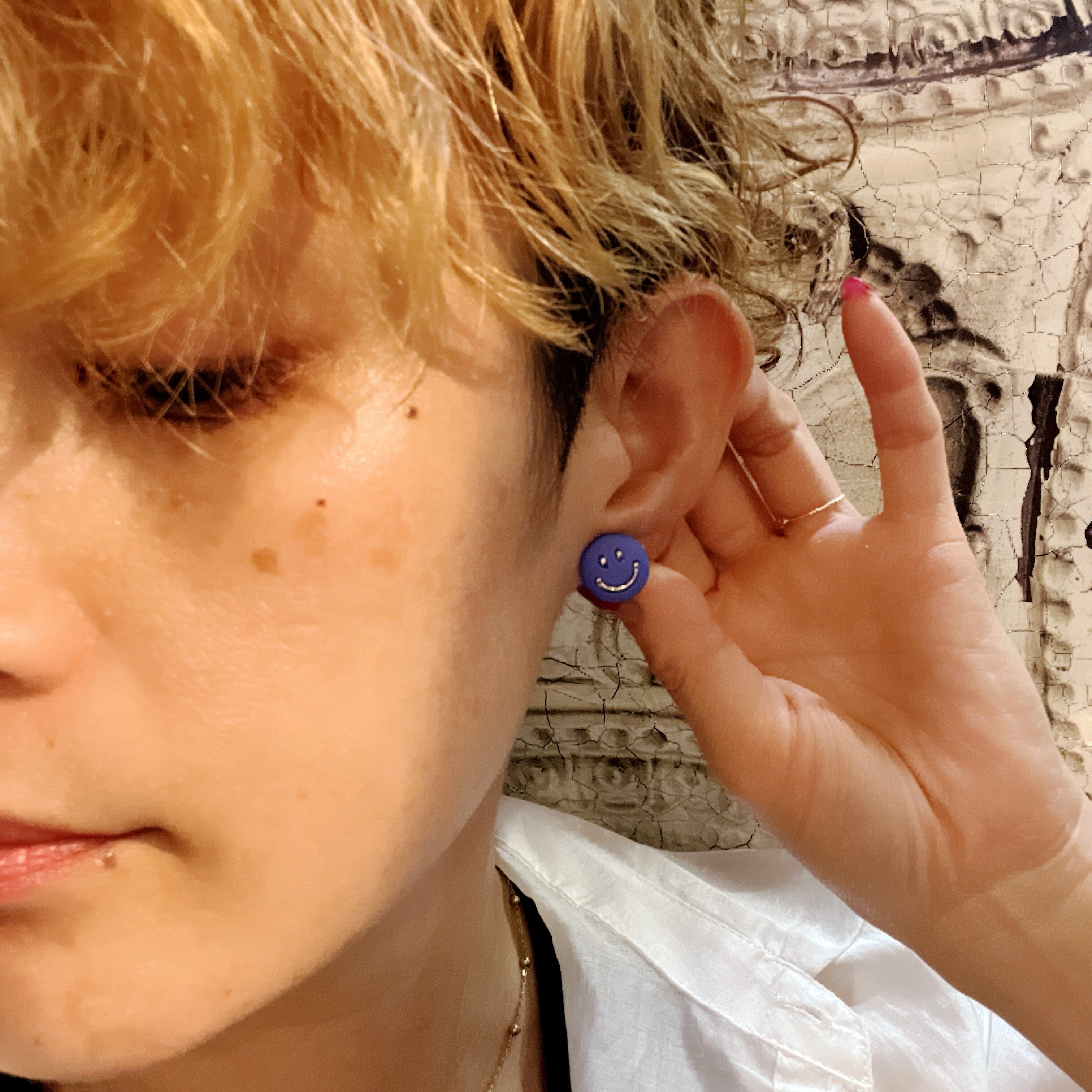キュートなニコちゃんデザインのブルーのピアスが登場です!