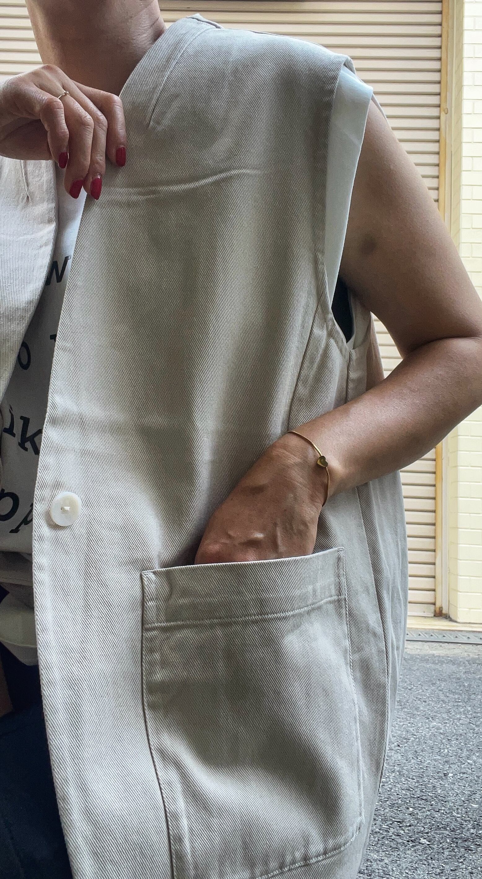 ノーカラーのシンプルなカジュアルジレが登場です!
