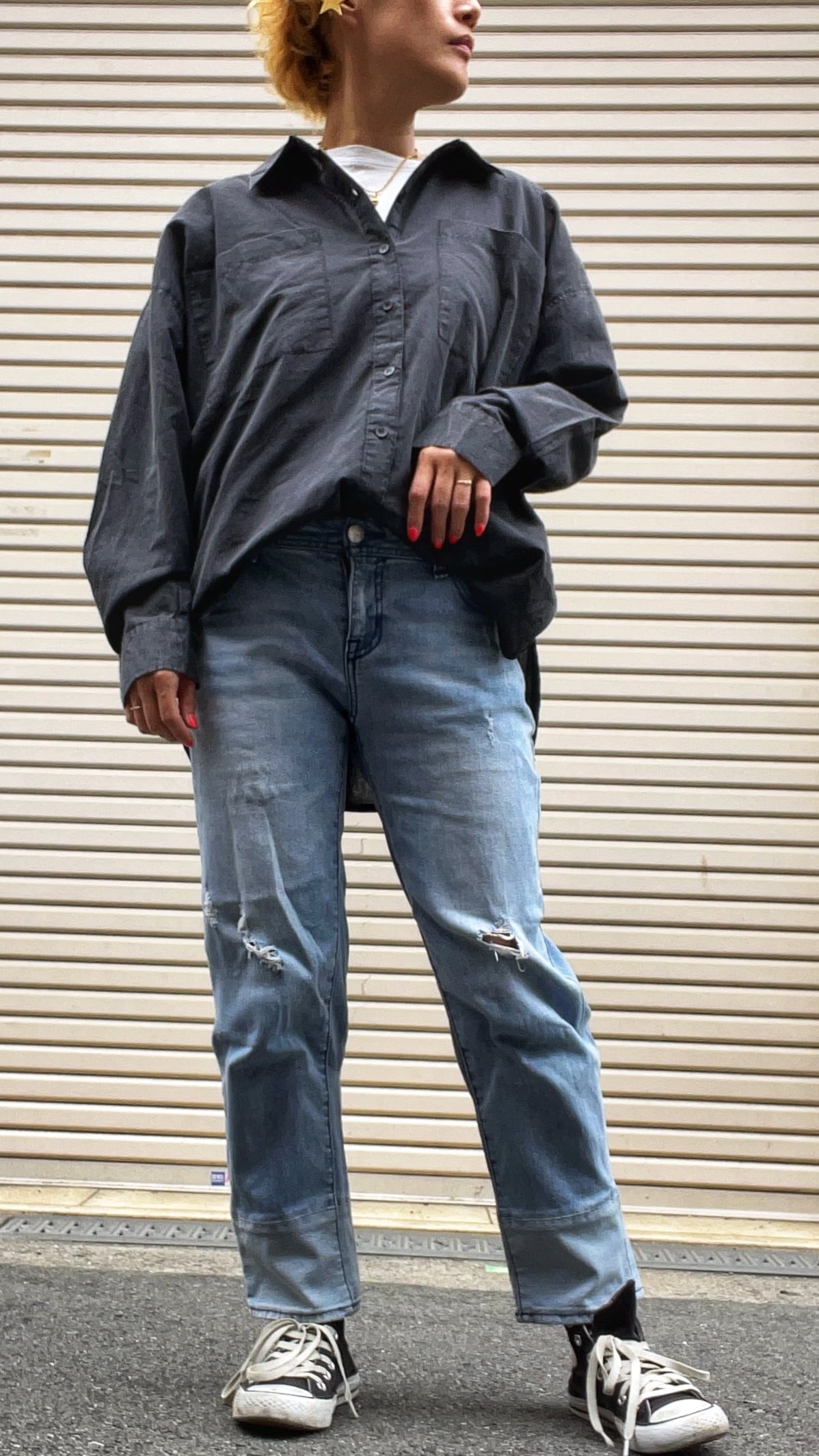 洗いがかった色合いがポイントで、シンプルながらもおしゃれな印象を与えます。どんなボトムスとも合わせやすく、着回し力も抜群です。