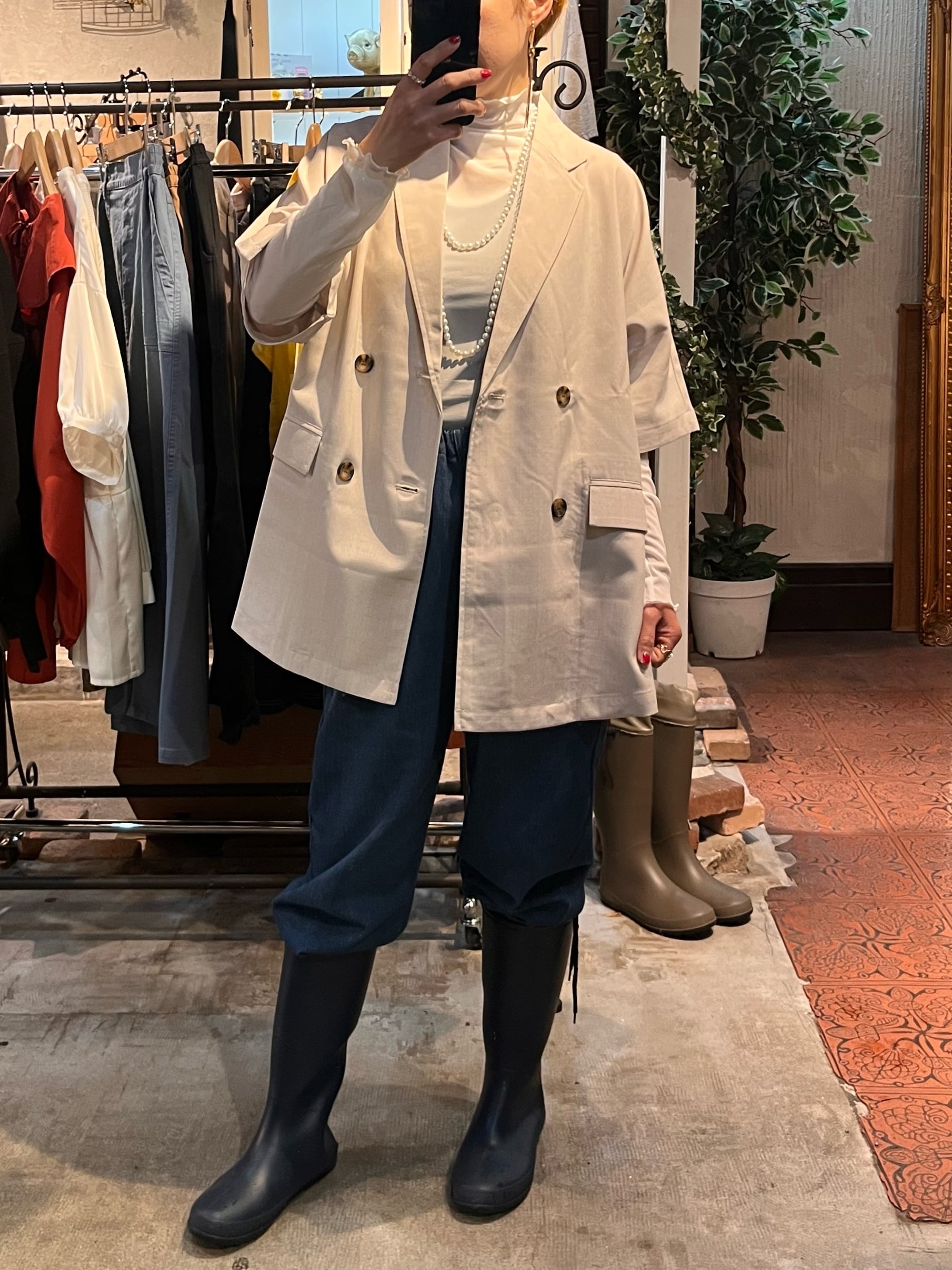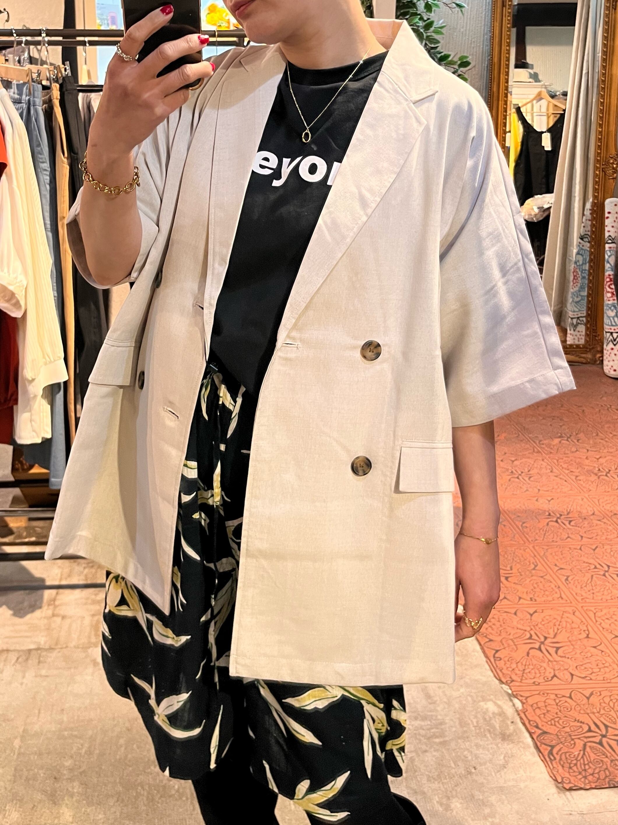 柔らかな雰囲気を演出するオーバーサイズ テーラードジャケットは、ポリエステル100%を使用しており、シワになりにくいのが特徴です。多様なシーンに合わせやすいベージュの色味は、オフィススタイルからカジュアルなコーディネートまで幅広く活躍します♡