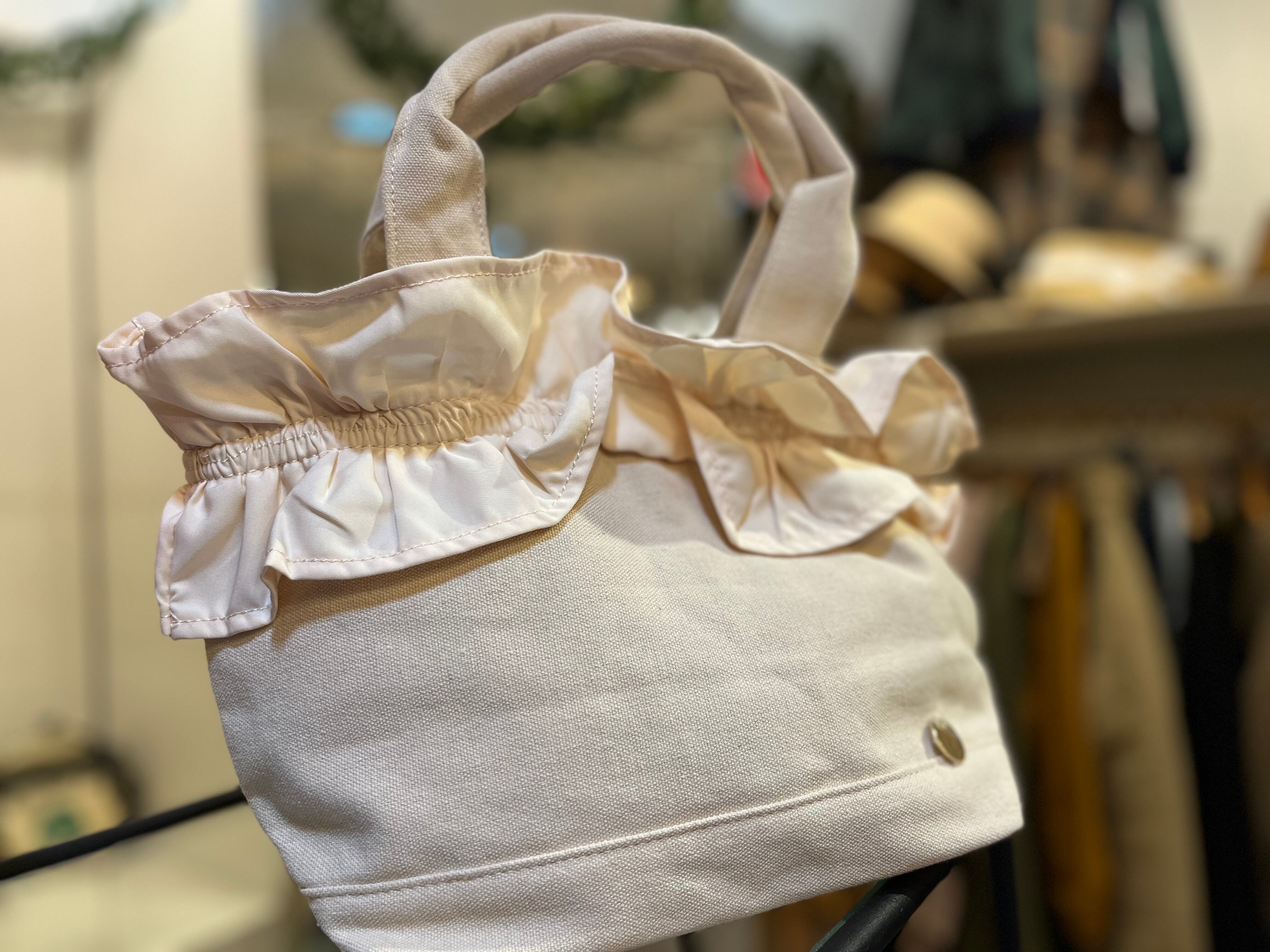 シンプルですがフリルが可愛いキャンバストートバッグ。