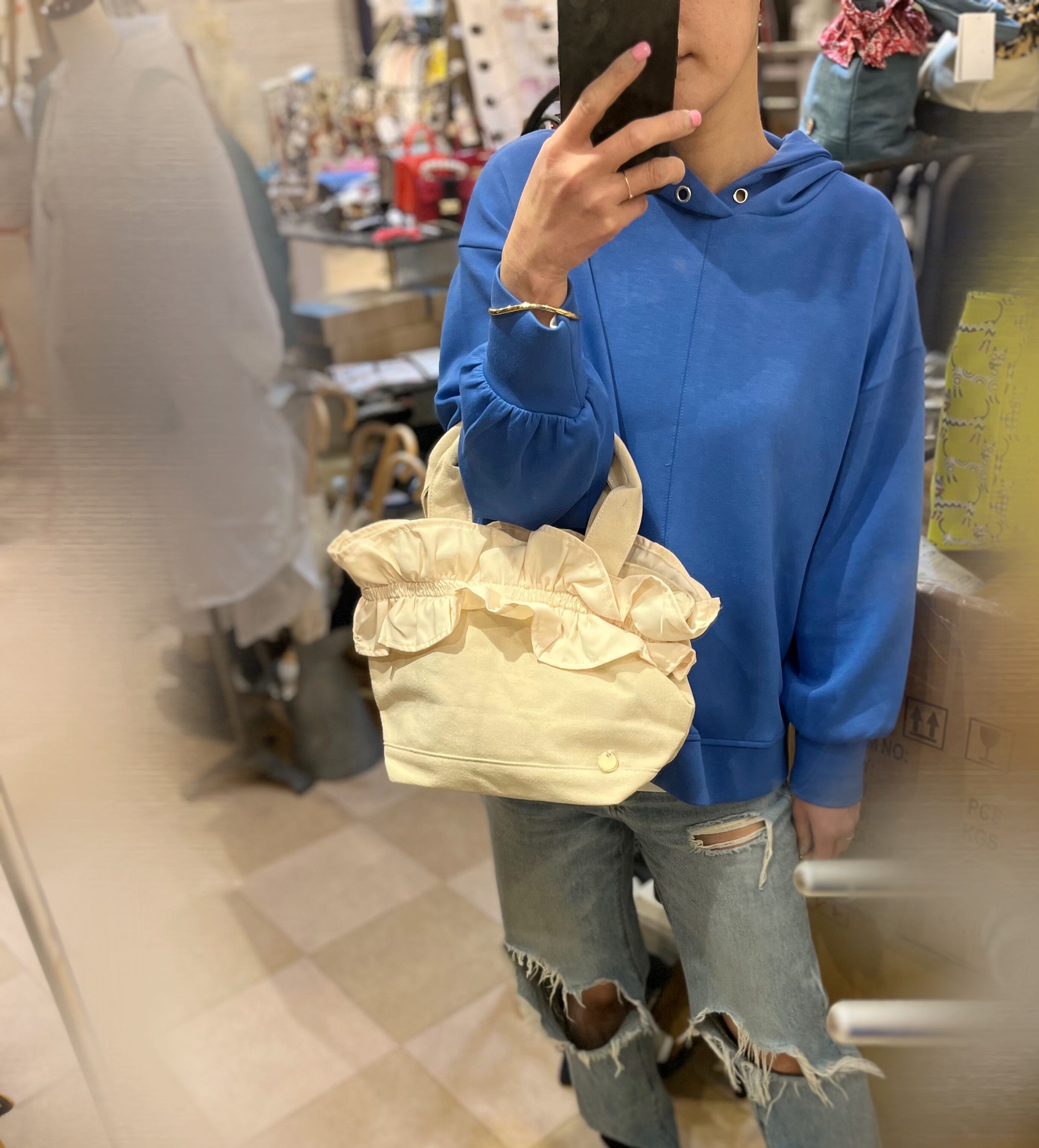 フリル付きトートバッグ/クリーム