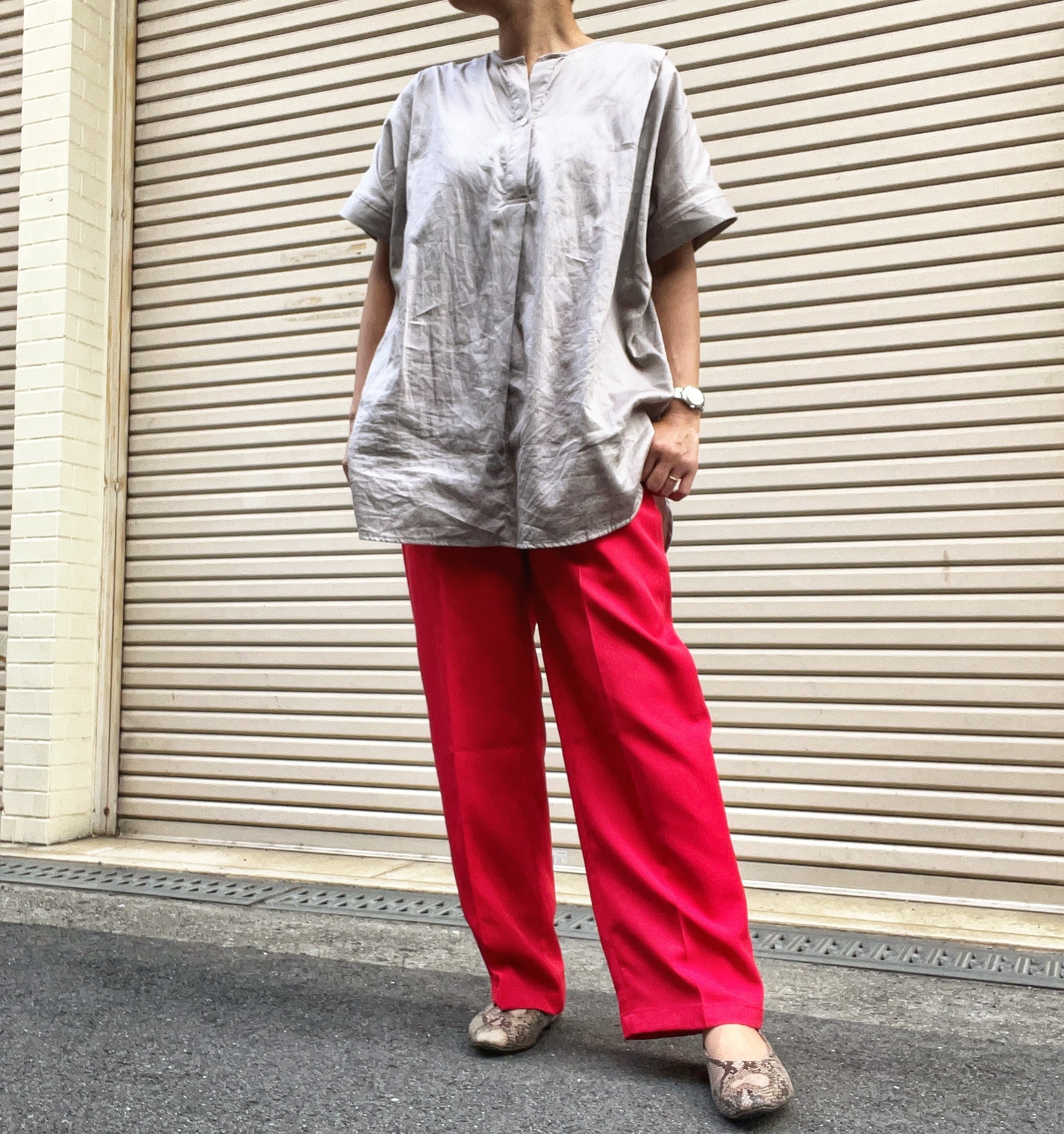 カラーパンツを履くとコーディネートにメリハリが出ますよ♡