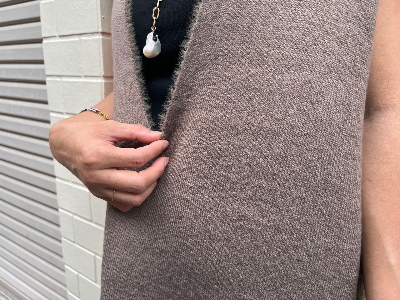 ざっくり着れるので中に薄手のニットを着てもごわつかない。