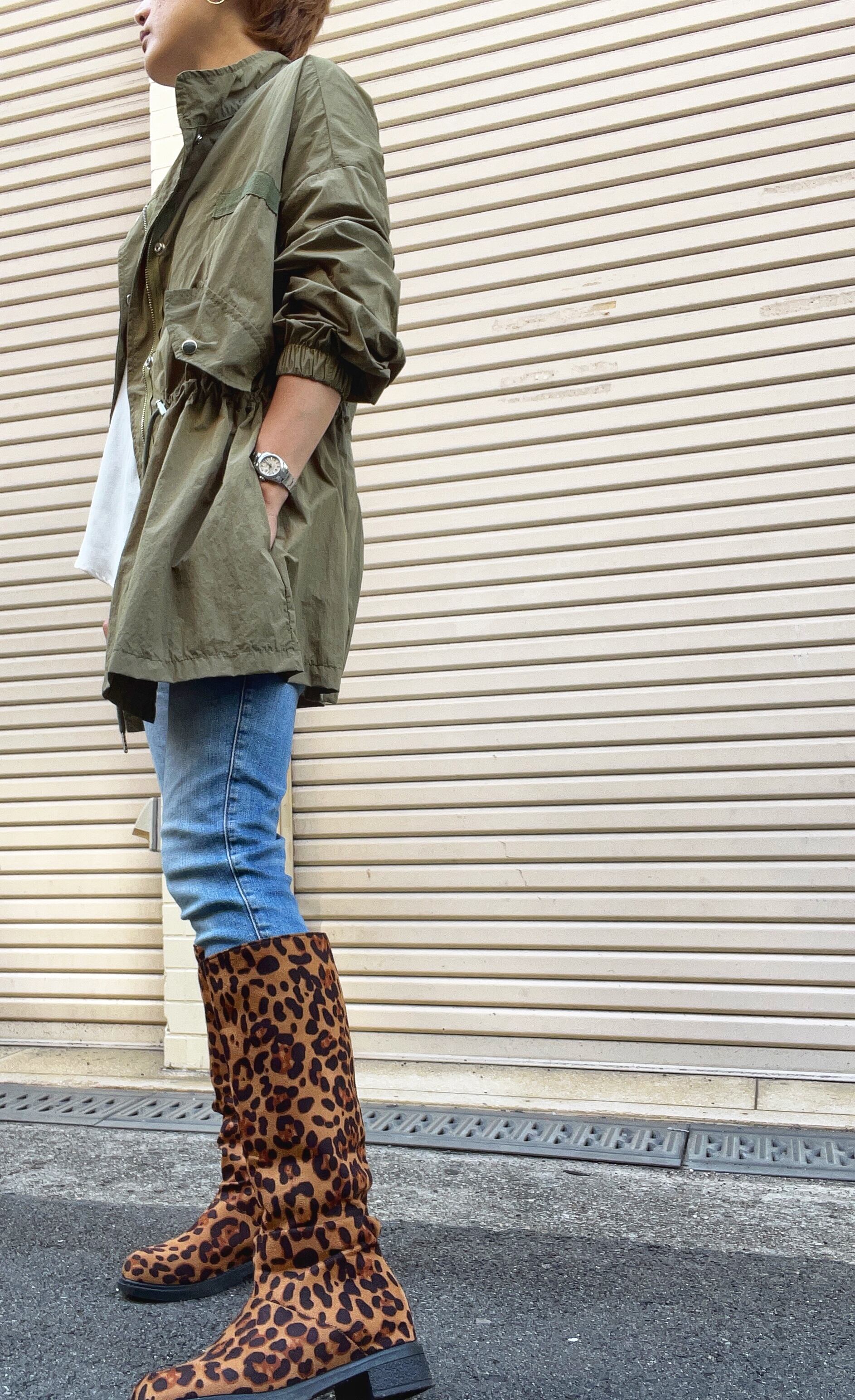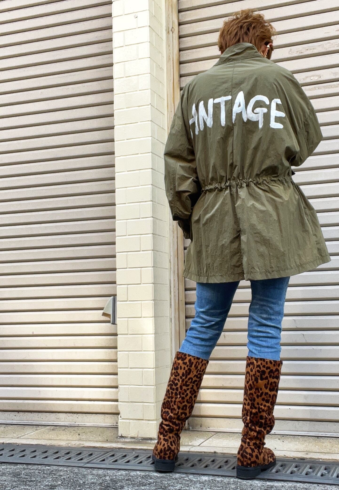 後ろのペイント風ロゴが可愛いミリタリーブルゾン。